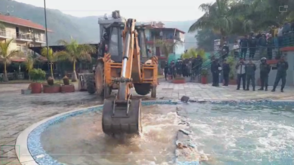 सर्वोच्चको आदेश कार्यान्वयन गर्न पोखरा लेकसाइडमा डोजर